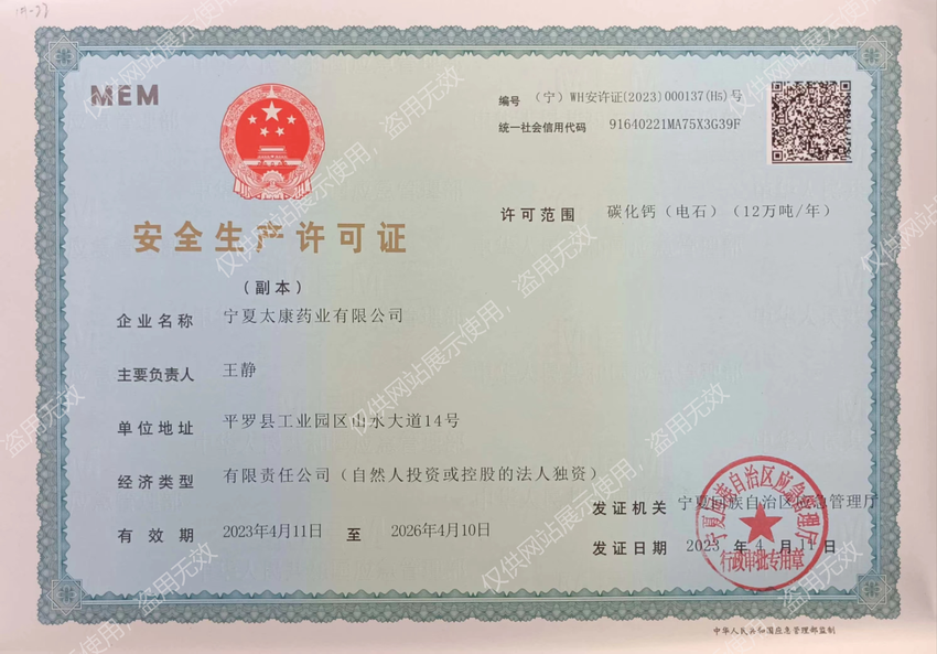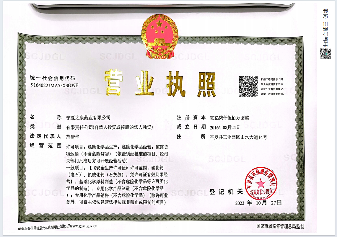 寧夏太康藥業(yè)有限公司是寧夏大地循環(huán)發(fā)展股份有限公司全資控股企業(yè)。工廠占地面積1600畝,擁有固定資產6.74億元人民幣,總裝機容量16萬KVA,是寧夏回族自治區(qū) 40家大型工業(yè)骨干企業(yè)之一。企業(yè)現有員工1100余人,其中主要管理人員134人,專業(yè)技術人員112人,高級工程師5人、工程師10人、經濟師3人、技師15人,公司擁有年生產能力:醫(yī)藥中間體產品-雙氰胺6WT、單氰胺5000T、一水肌酸3000T、氨基胍碳酸鹽3000T;化工基礎原料產品-石灰氮22.5WT電石12WT。